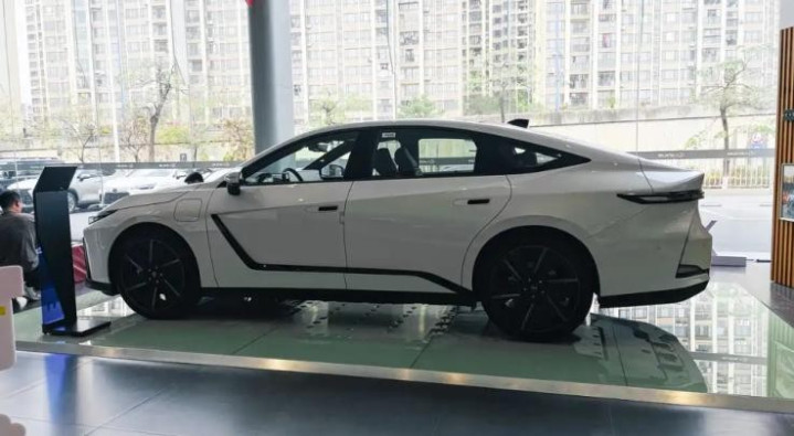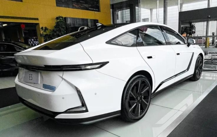 接着将视线切换到车身侧面,全新雷克萨斯ES采用传统的三厢轿车设计,车顶线条呈溜背式设计,与车门区域的黑色饰条相交,整体搭配来看,压低了车身侧面的视觉高度,使其看上去更显修长。在细节上,新车的充电口设置在前翼子板区域,门把手采用半隐藏式设计,低风阻轮圈采用21英寸规格,搭配235/45 R21的轮胎,迎合了主流的审美。